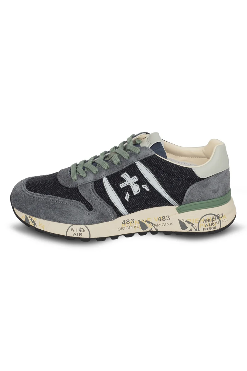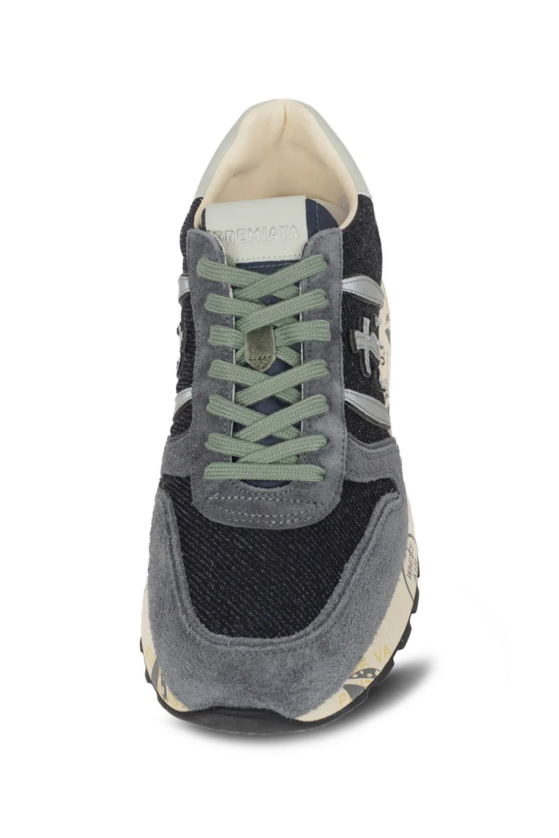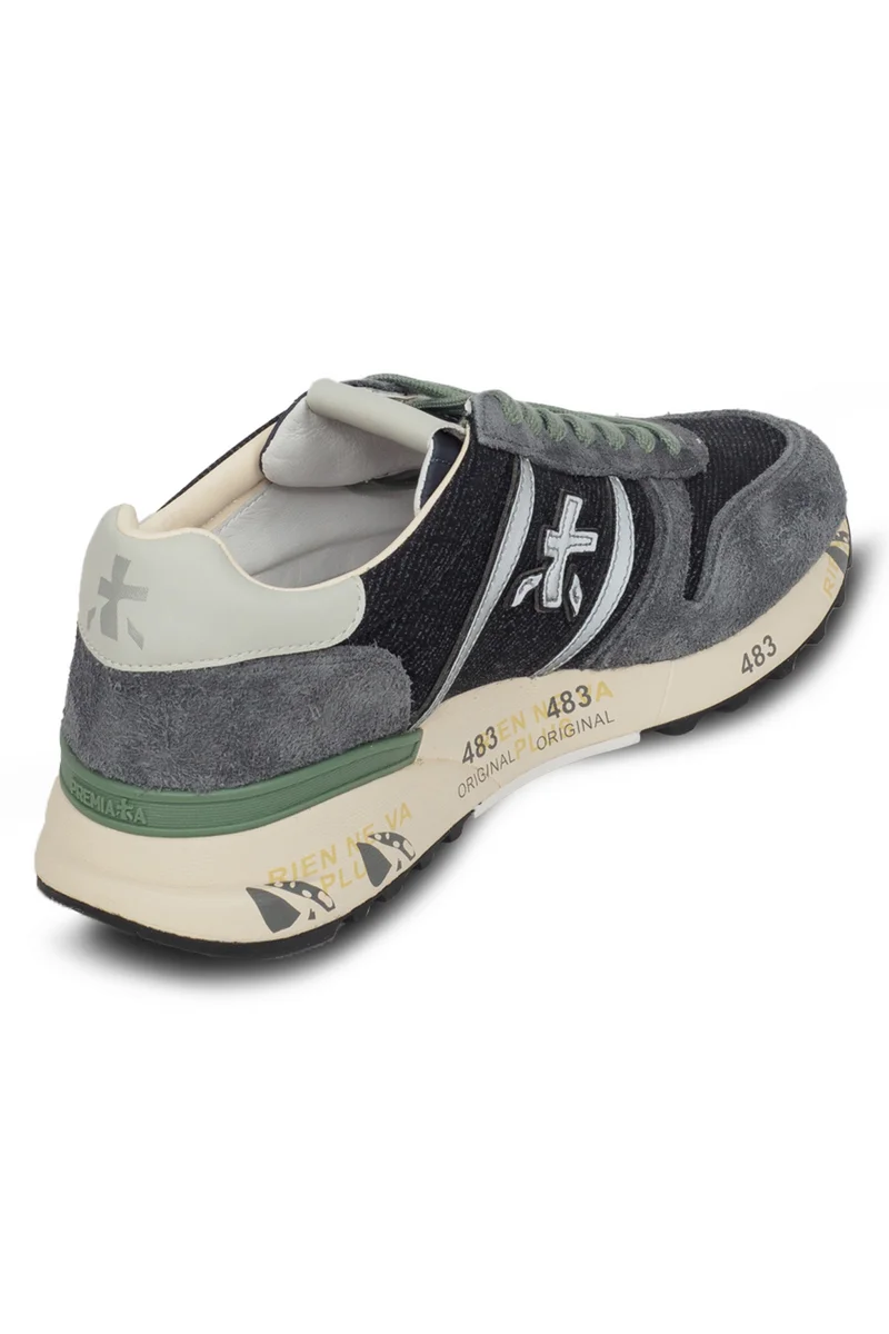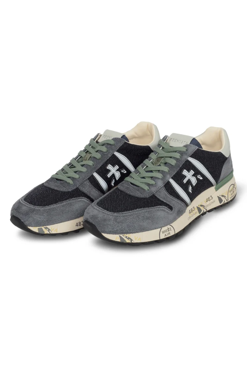 Кроссовки Lander из мягкой замши и нейлона серых оттенков. Внешний вид дополняет узнаваемый логотип Premiata и цветные детали на подошве. Эргономичная и сверхлегкая подошва.