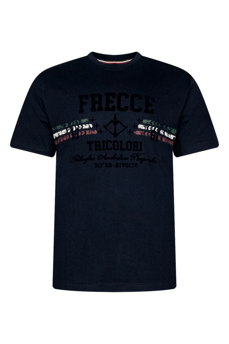 Эта мужская футболка с короткими рукавами украшена интригующими техниками печати на основе флока и воды, которые демонстрируют основные символы Frecce Tricolori. Эта одежда не только обеспечивает комфорт благодаря мягкой хлопчатобумажной ткани, но и визуально подчеркивает точность и элегантность Национальной пилотажной группы, что делает ее идеальной для дополнения повседневного и изысканного наряда.