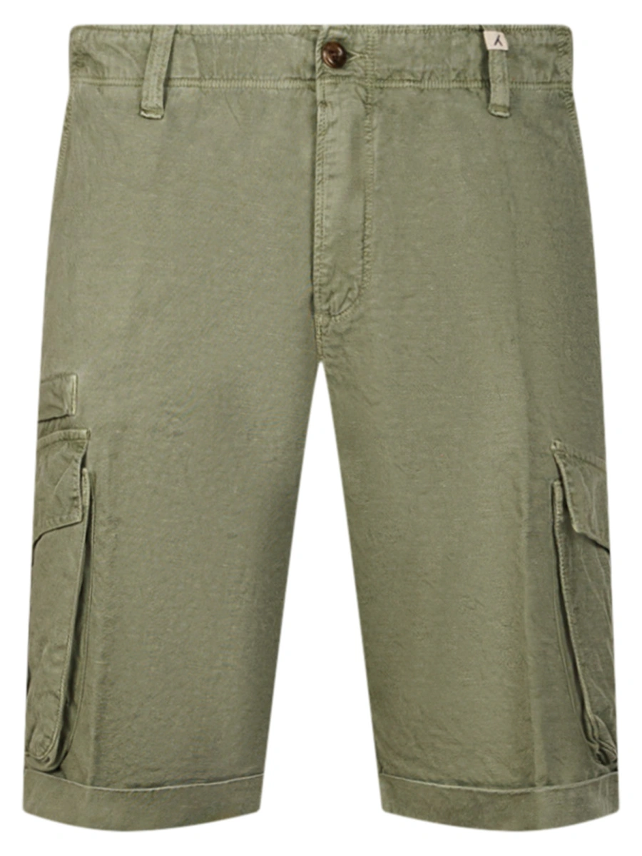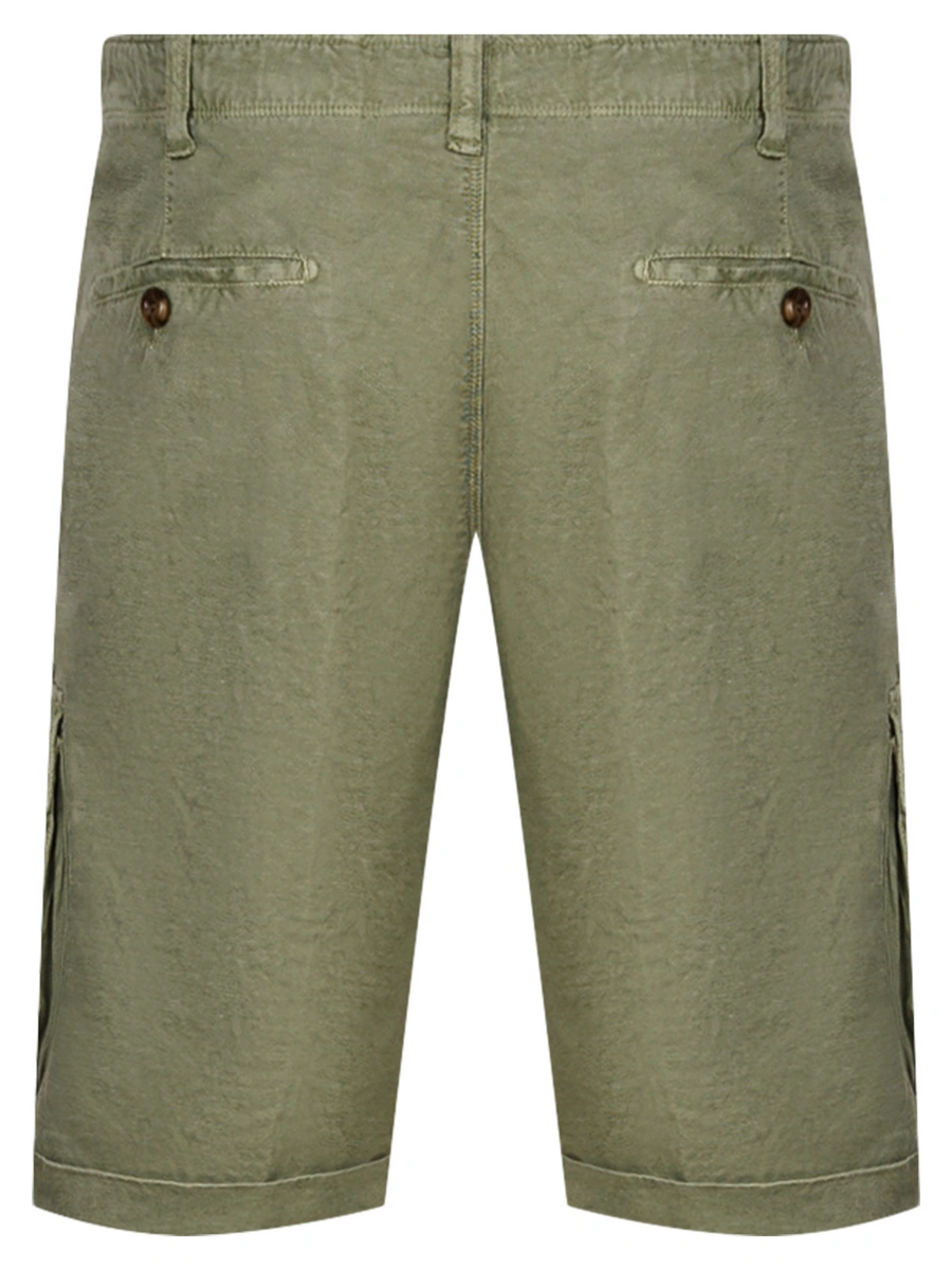 Шорты карго с подворотом и закругленными карманами из ультра тонкой и легкой ткани твил 220 гр из хлопка, льна и эластана, с эффектор потертости, благодаря технологии Garment dyed old.